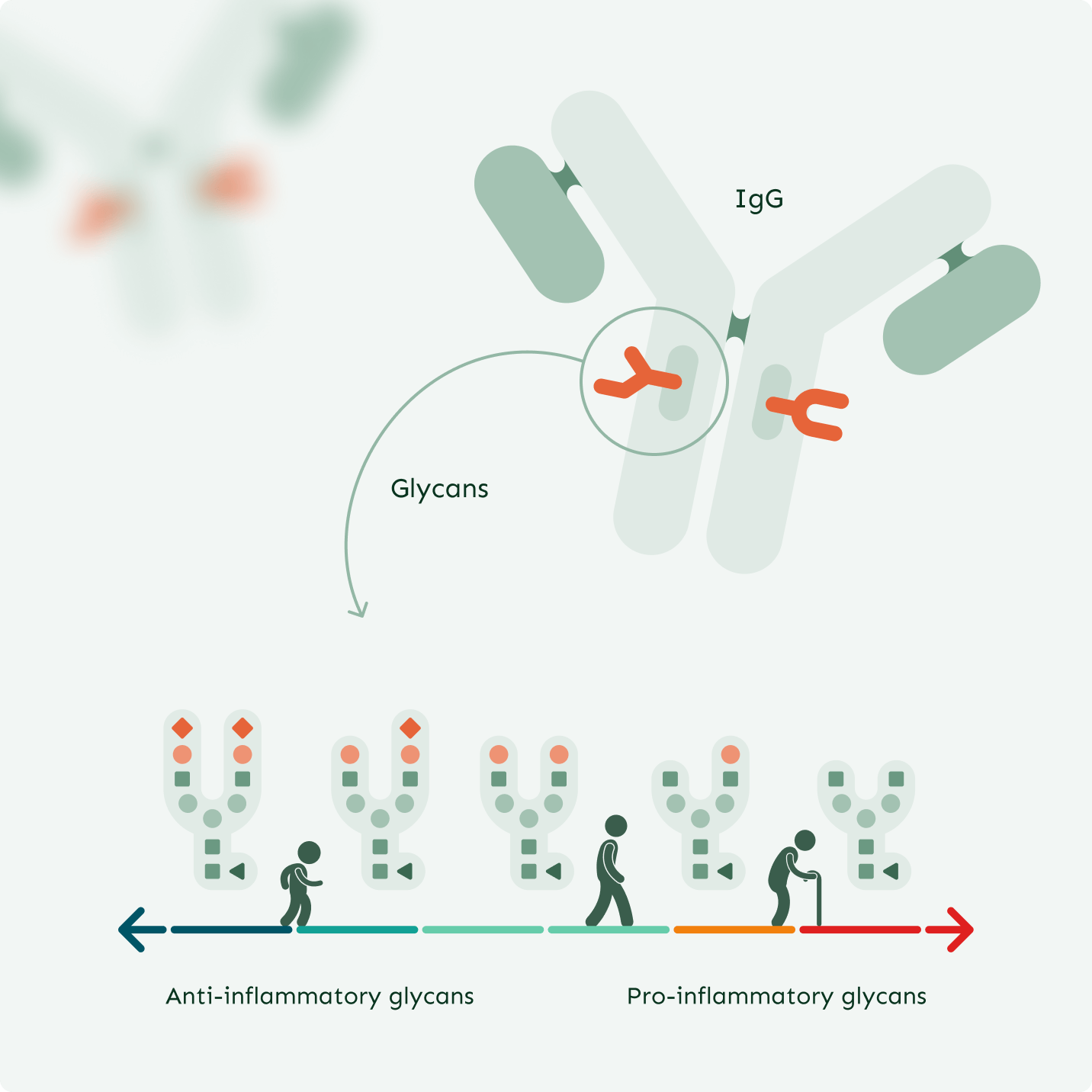 We analyze glycans on immunoglobulin G (IgG). These molecules reflect how chronic inflammation is affecting your aging and long-term health risks.