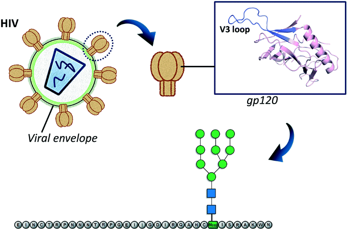 Glycoproteins found at the surface of several viruses are called viral envelope glycoproteins and they are great targets for virus neutralisation. Synthetic glycopeptides that mimic natural HIV envelope glycoproteins have been considered as anti-HIV therapy. Viral envelope glycoproteins, such as gp120 in HIV-1, have g…