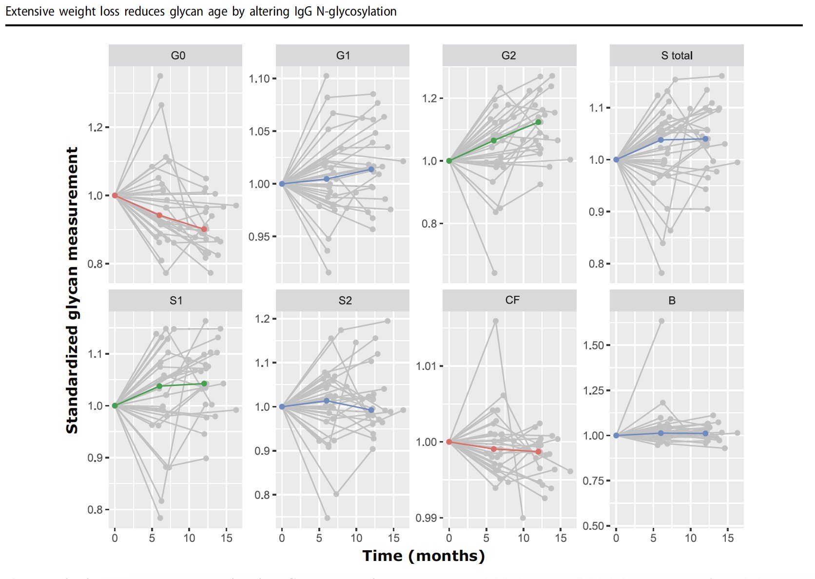Obese people’s glycans confirm that their bodies are, in most cases, older than their chronological age (birth years). Our team recently went one step further and investigated what happens when obese people lose weight, and the answer was quite exciting: their biological age decreased! This finding implies that the internal damage caused by obesity is possibly entirely reversible.