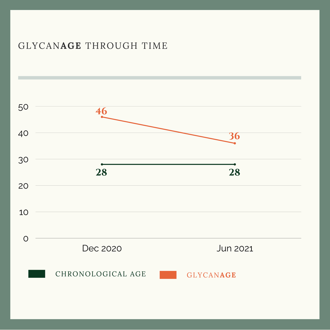 Haha… let’s just say that our sedentary lifestyle got the best of us. We got tested right after my 28th birthday and my GlycanAge was 46. As soon as we got the results, I knew I wanted to improve my score.