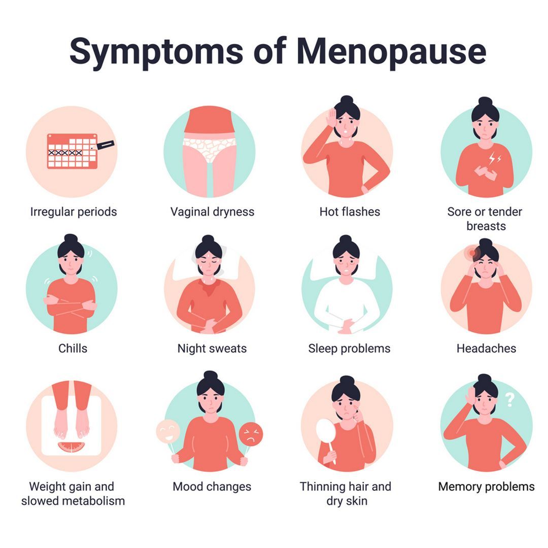 - The most common menopause symptoms include irregular periods, hot flashes, night sweats, mood changes, vaginal dryness, diminished libido, weight gain, sleep issues, etc.